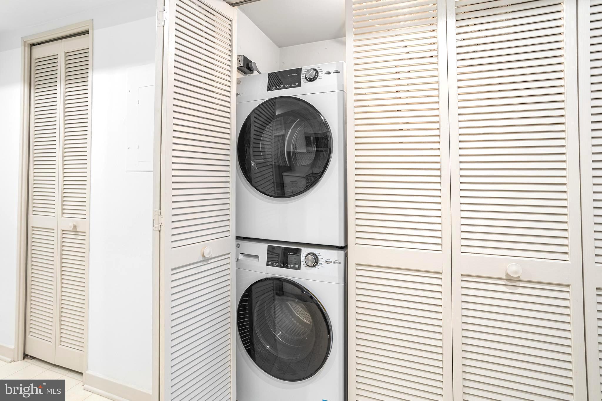 Step through your Private Front Door Entrance into a large Foyer with coat closet and powder room. You'll immediately notice an inviting open concept that seamlessly connects each room ideal for both relaxation and entertaining. The heart of the home is the brand-new Kitchen with white shaker cabinet kitchen, sleek quartz countertops, recessed lighting, new stainless steel appliances, ample room for a breakfast table, pantry closet and a stackable washer and dryer for convenience.